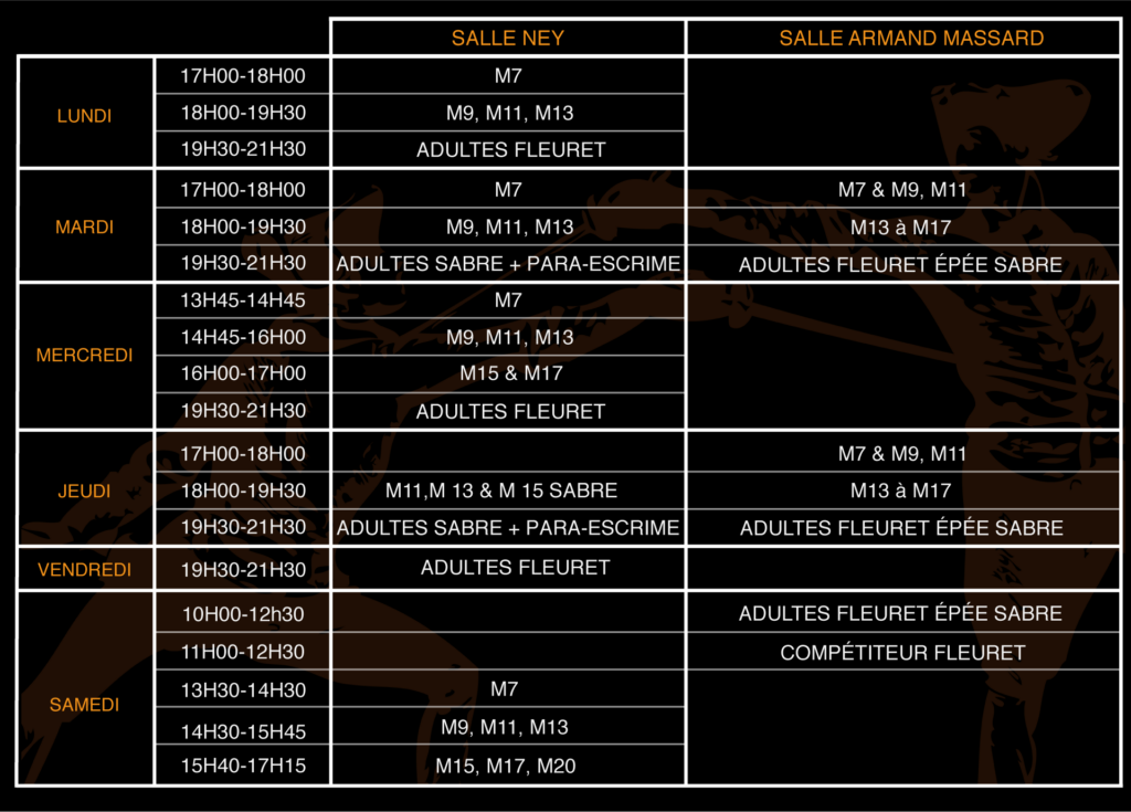 Attention : L’entrée de la salle d’armes Armand Massard 15e se fait par la piscine.